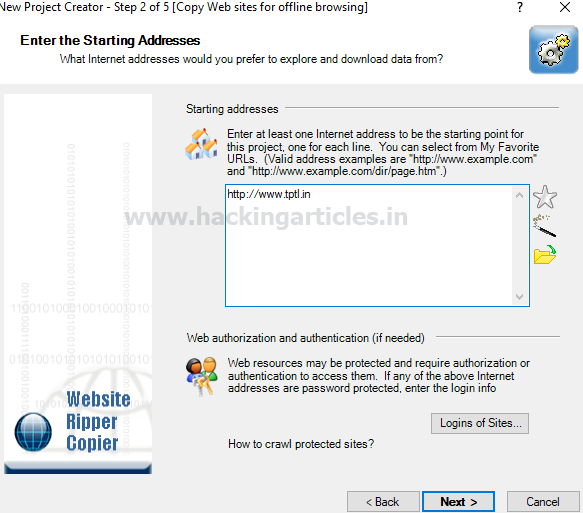 Enter the website URL as http://tptl.in and click on next.